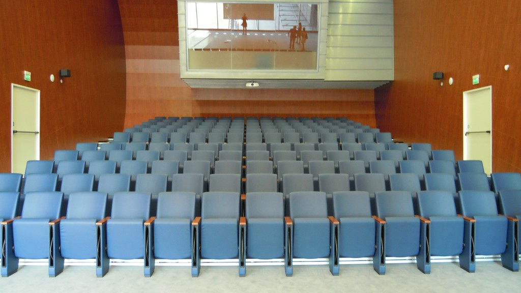 La sala ad Anfiteatro di Business Center Venezia, consente a qualsiasi partecipante di poter vedere comodamente i relatori e quanto viene proiettato nello schermo.